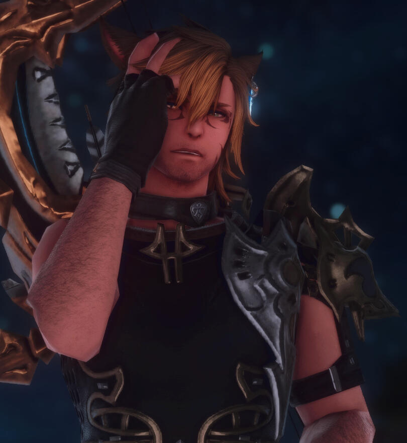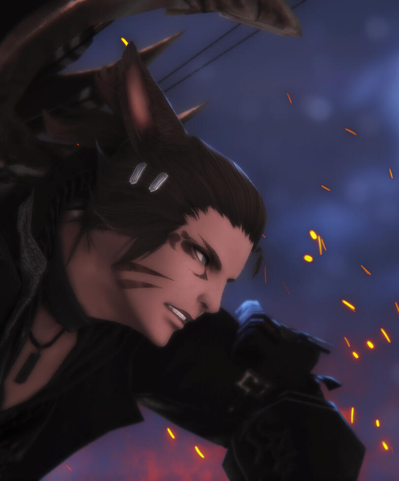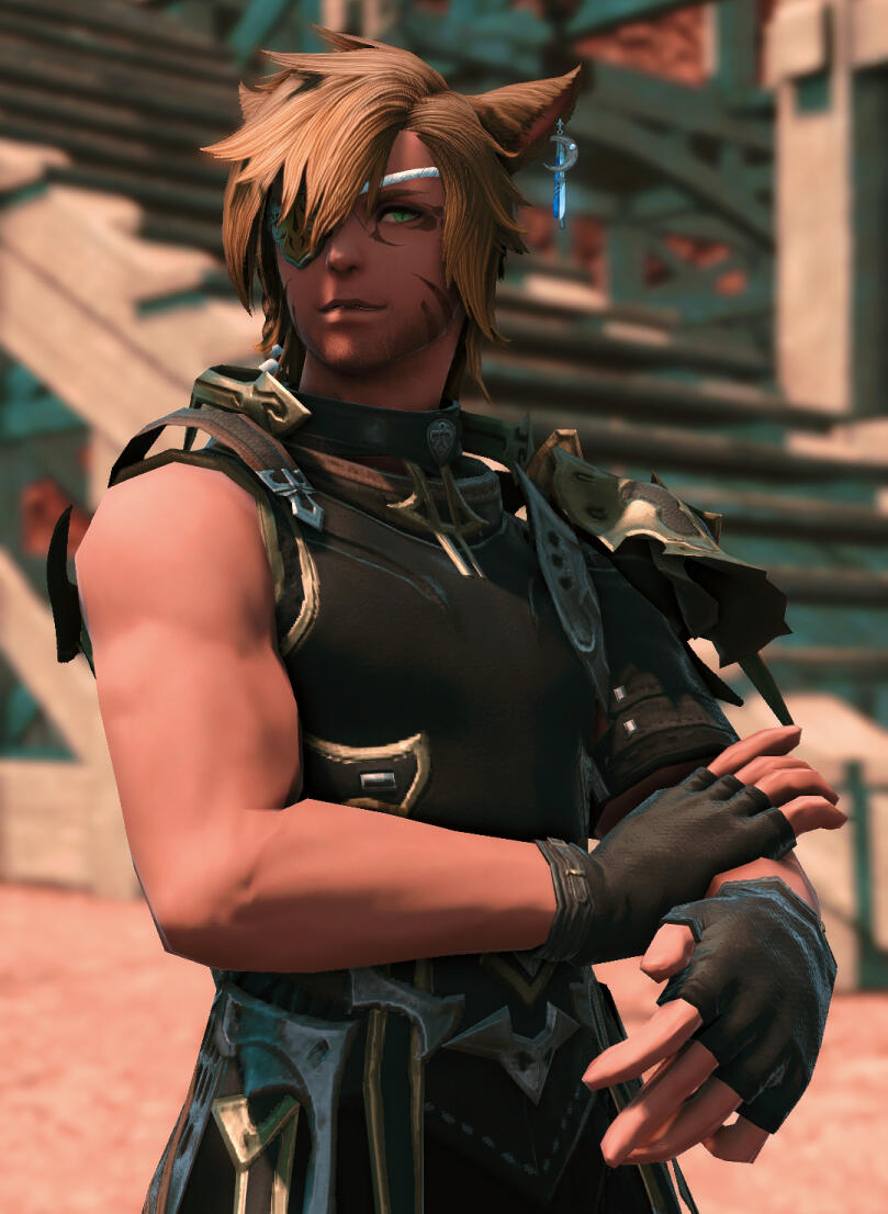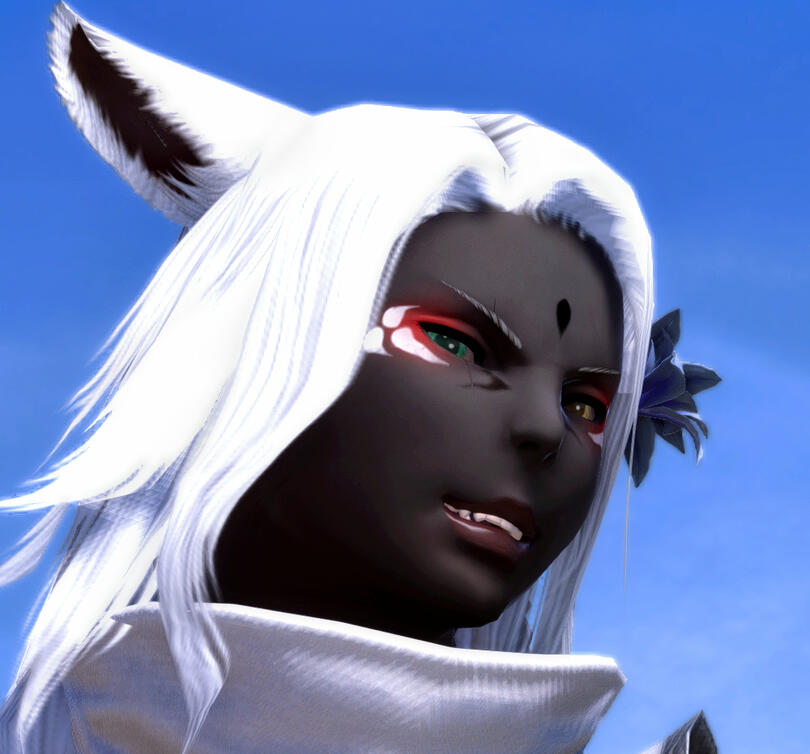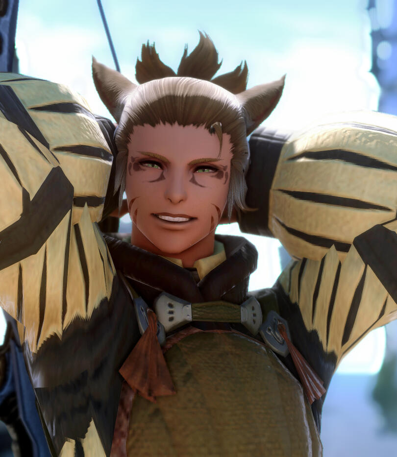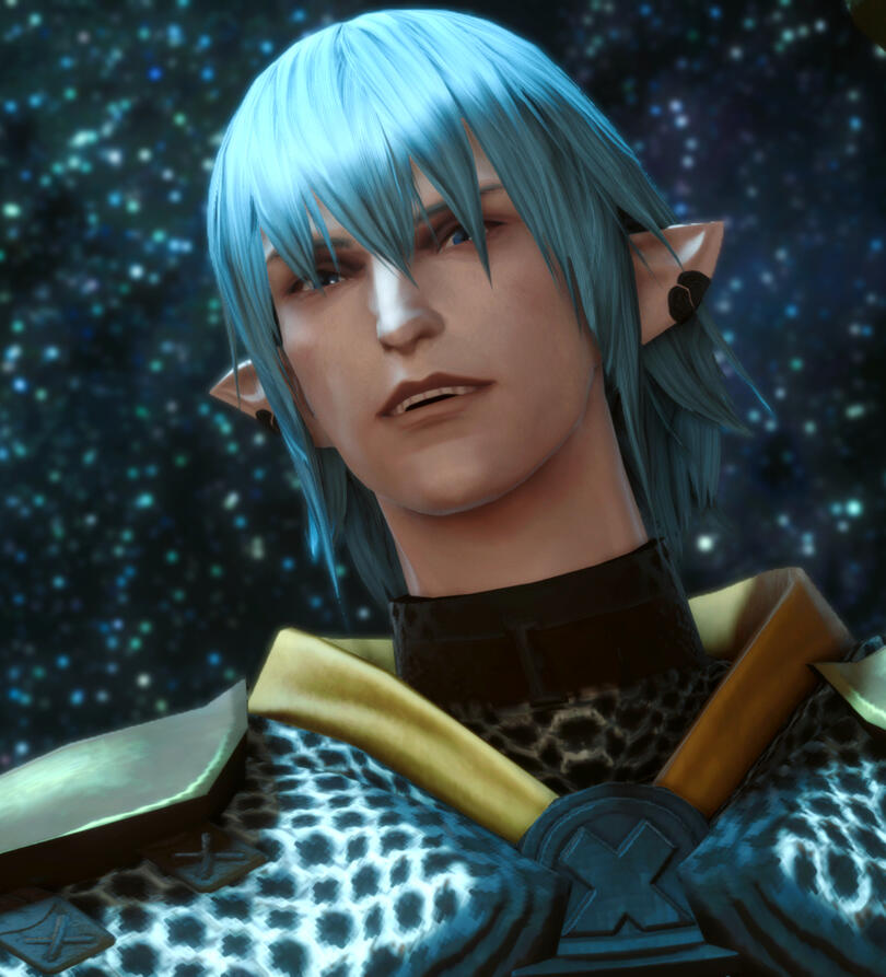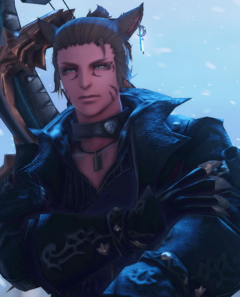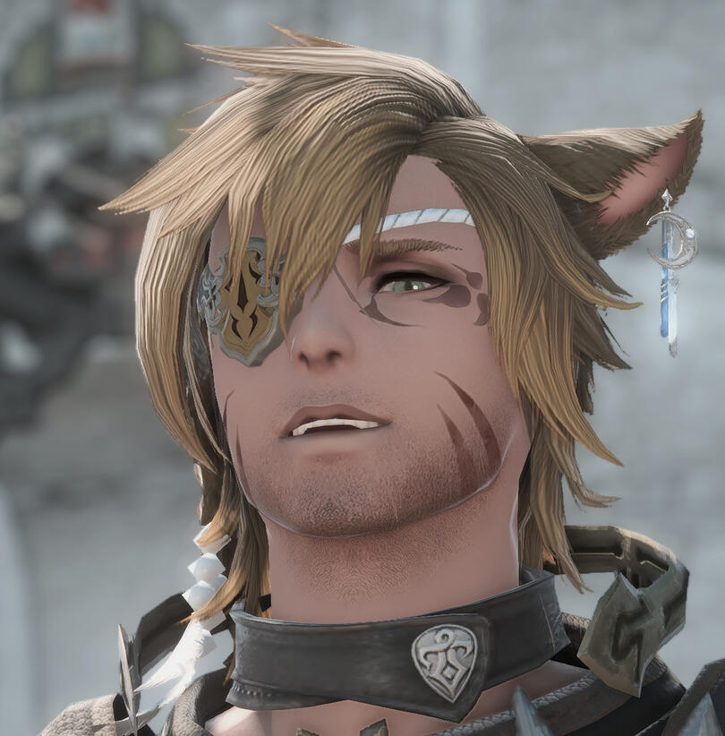 After the liberation of Doma and Ala Mhigo, He would ride the success for a while... but it was short lived. I'chaii would slowly lose almost every Scion, and eventually, he would fall too... only to awake in The First, one of the Reflections of the world that split apart from The Source. There, he would find his friends.... but he would find the horror of a world all but lost to a calamity- and though he would make new friends... he would lose countless more. unimaginable loss in a cruel world that has no love for its people. and he would just about lose his own life too. He would win, in the end, but would barely make out out alive. He came out with new physical and mental scars.... and wondering if this was all worth it.